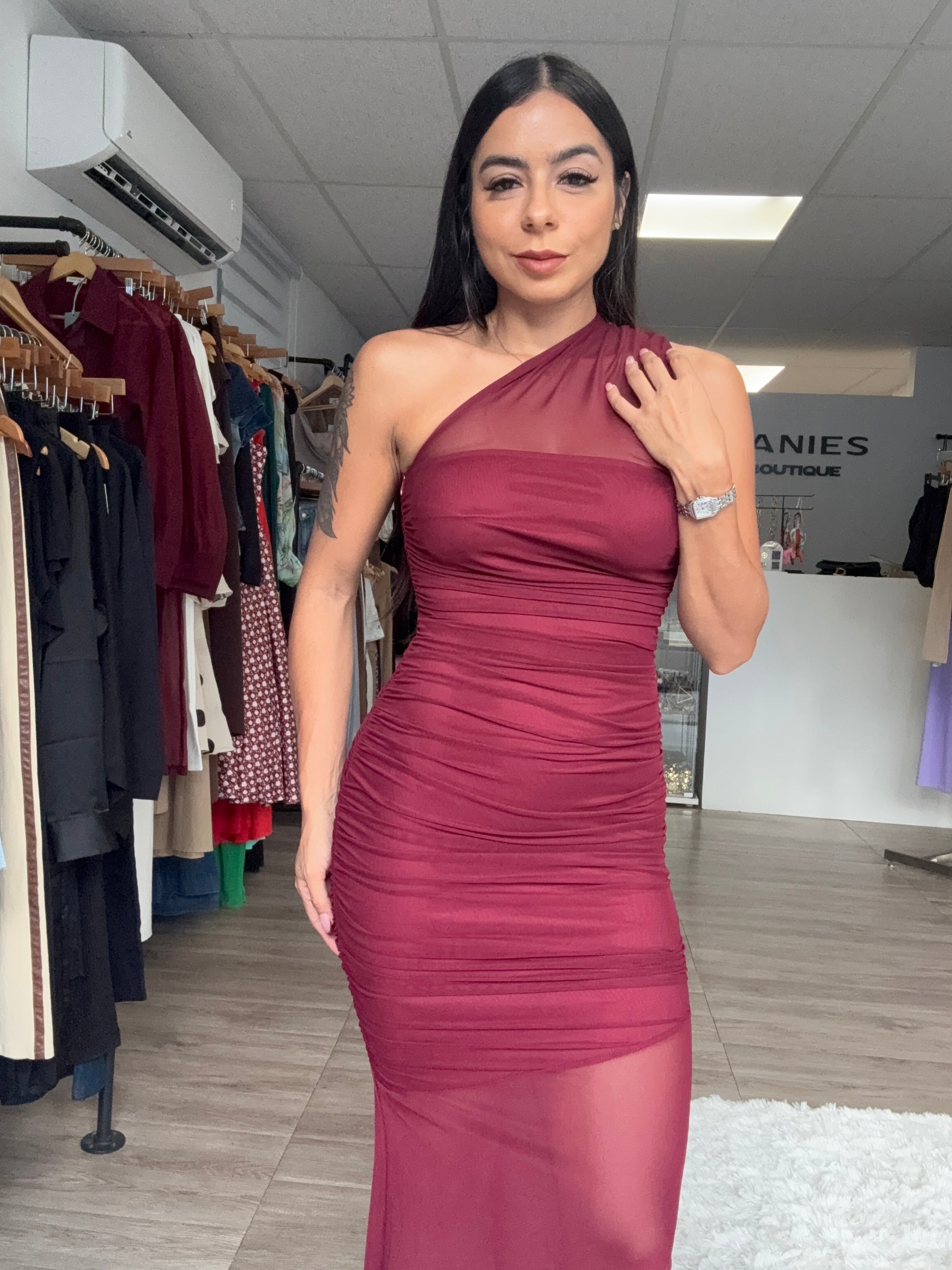 Burgundy Mesh Dress