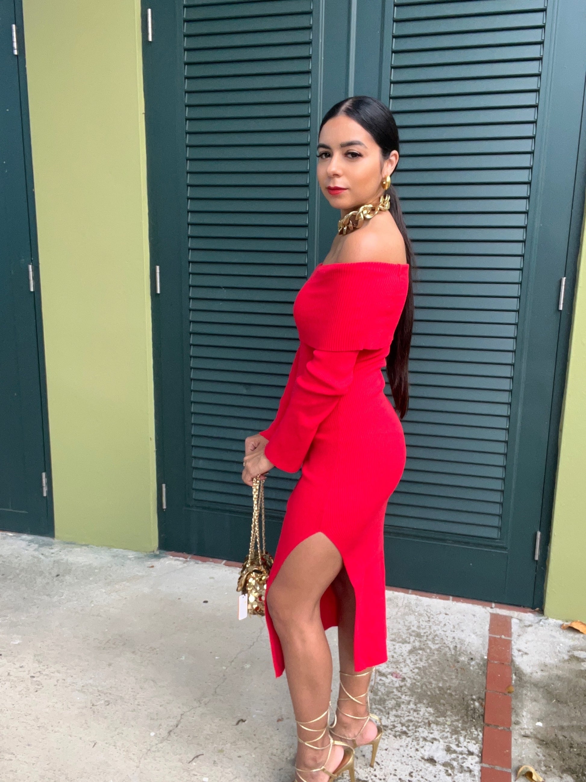 Ribbed Midi Red dress
